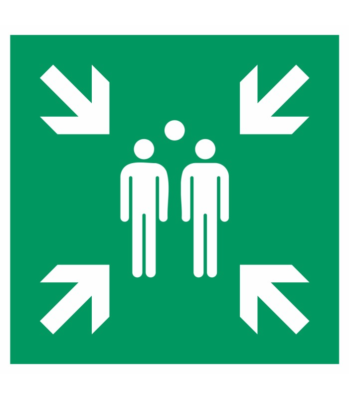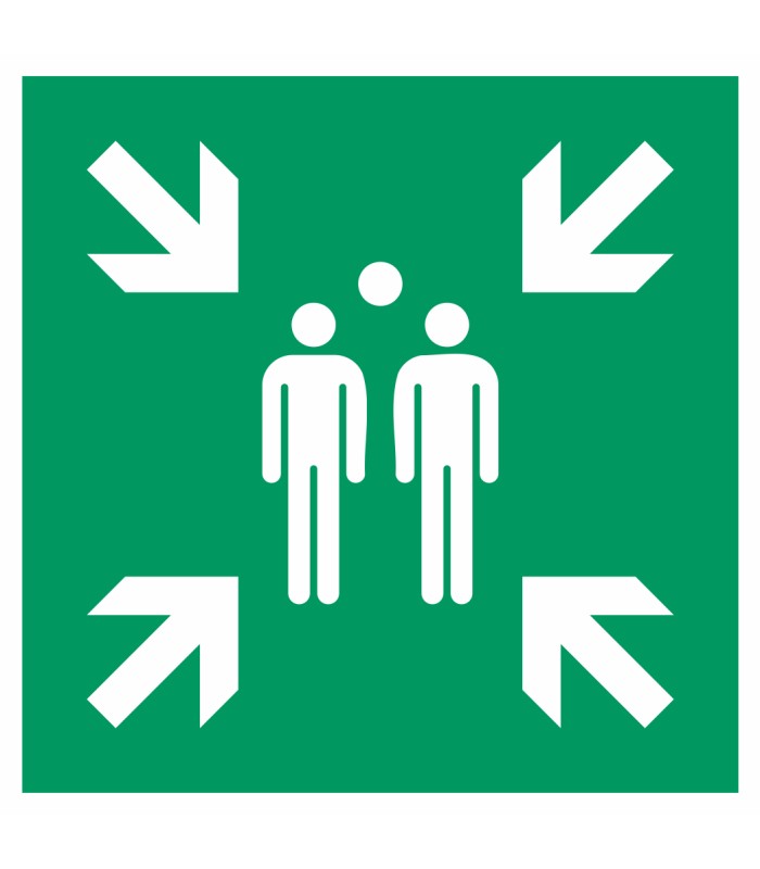 Die Aufkleber 'Sammelstelle' gem. ISO-7010 sind in verschiedenen Größen und auch spiegelverkehrt erhältlich.
