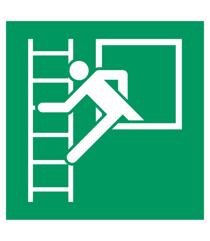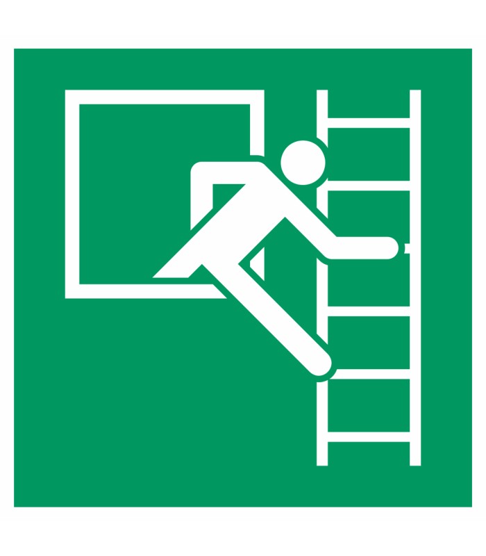 Die Aufkleber 'Notausstieg Fluchtleiter' gem. ISO-7010 sind in verschiedenen Größen und auch spiegelverkehrt erhältlich.
