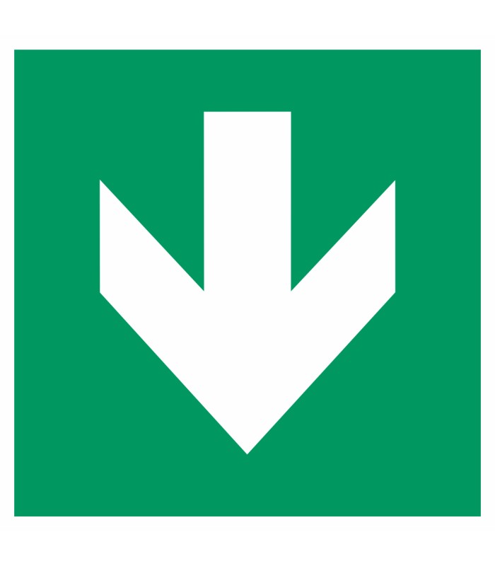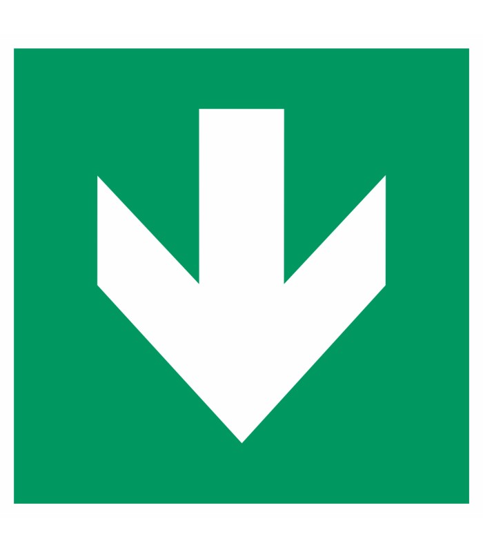Die Aufkleber 'Richtungsangabe abwärts' gem. ISO-7010 sind in verschiedenen Größen und auch spiegelverkehrt erhältlich.