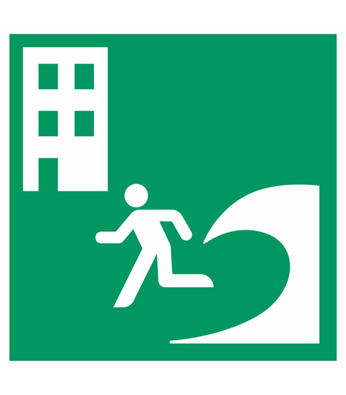 Die Aufkleber 'Tsunami-Evakuierungsgebäude' gem. ISO-20712 sind in verschiedenen Größen und auch spiegelverkehrt erhältlich.