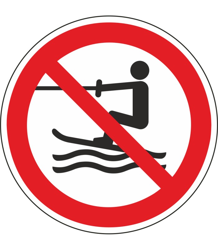 Die Schilder 'Wasserski-Aktivitäten verboten' gem. ISO-20712 werden aus hochwertigem weißem Kunststoff hergestellt und sind in unterschiedlichen Größen erhältlich.