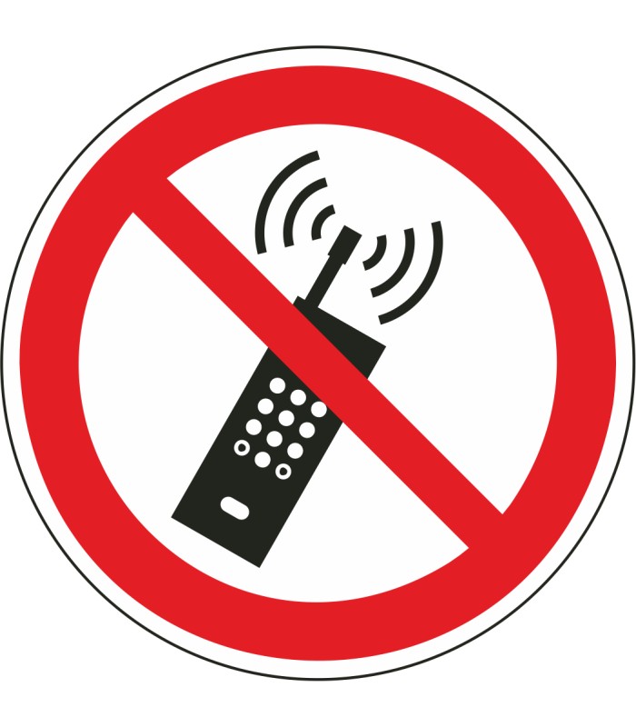Die Schilder 'Eingeschaltete Mobiltelefone verboten' gem. ISO-7010 werden aus hochwertigem weißem Kunststoff hergestellt und sind in unterschiedlichen Größen erhältlich.