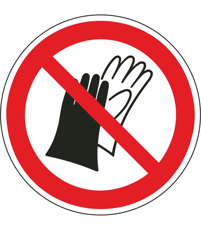 Die Schilder 'Das Benutzen von Handschuhen ist verboten' gem. ISO-7010 werden aus hochwertigem weißem Kunststoff hergestellt und sind in unterschiedlichen Größen erhältlich.