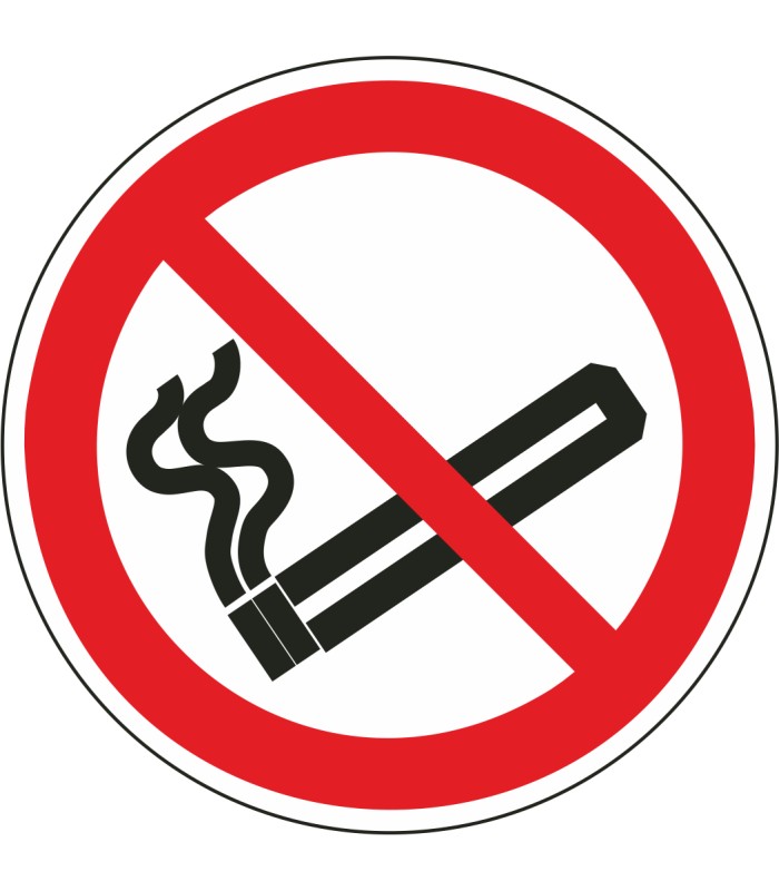 Die Aufkleber 'Rauchen verboten' gem. ISO-7010 sind in verschiedenen Größen und auch spiegelverkehrt erhältlich.