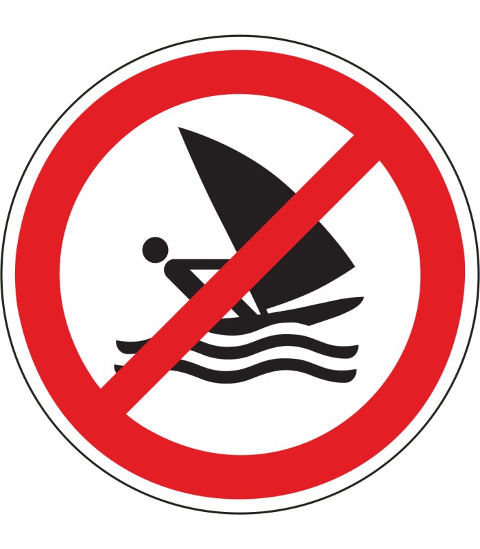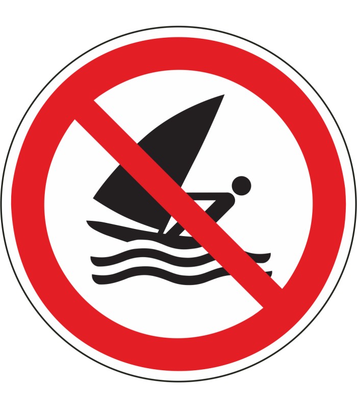 Die Aufkleber 'Windsurfen verboten' gem. ISO-20712 sind in verschiedenen Größen und auch spiegelverkehrt erhältlich.