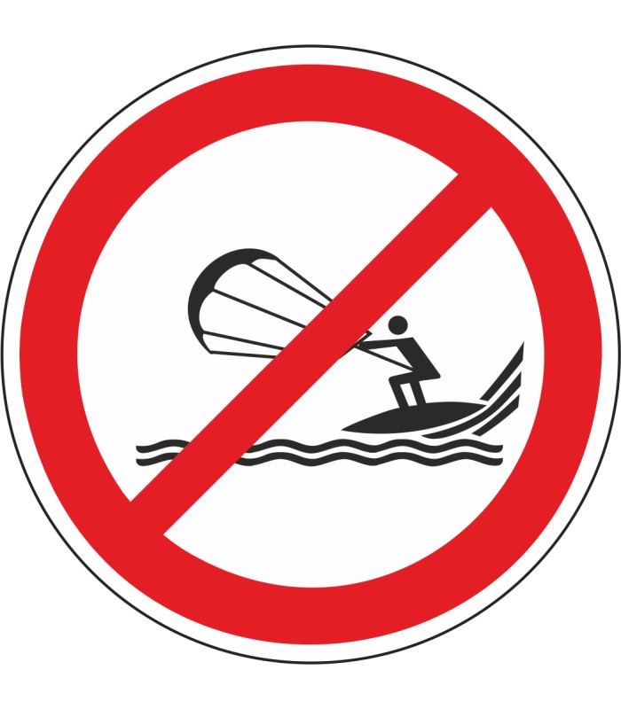 Die Aufkleber 'Kitesurfen verboten' gem. ISO-20712 sind in verschiedenen Größen und auch spiegelverkehrt erhältlich.