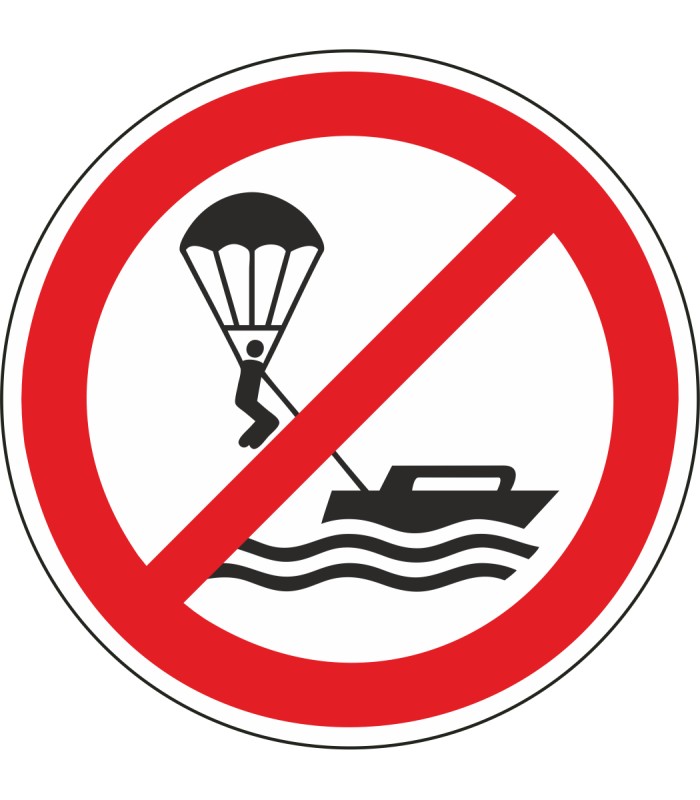 Die Aufkleber 'Parasailing verboten' gem. ISO-20712 sind in verschiedenen Größen und auch spiegelverkehrt erhältlich.