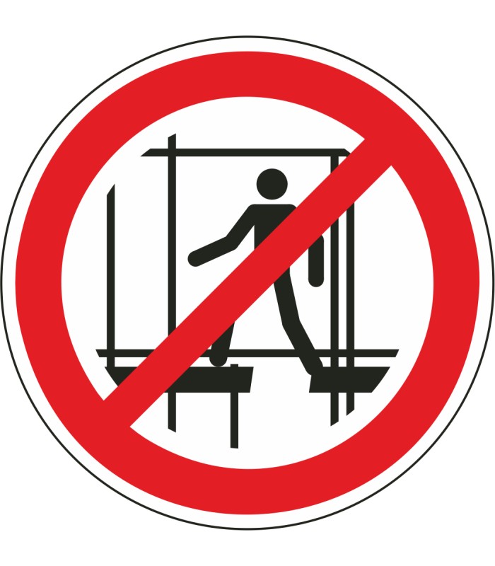 Die Aufkleber 'Benutzung des unvollständigen Gerüsts verboten' gem. ISO-7010 sind in verschiedenen Größen und auch spiegelverkehrt erhältlich.