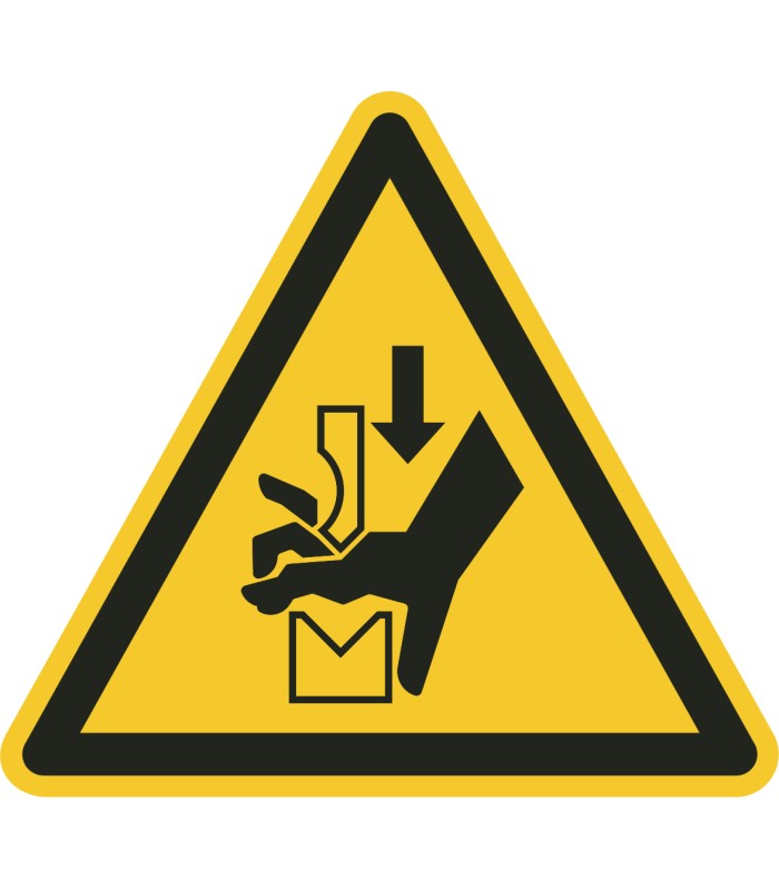 Die Schilder 'Warnung vor Handquetschung in Abkantpresse' gem. ISO-7010 werden aus hochwertigem weißem Kunststoff hergestellt und sind in unterschiedlichen Größen erhältlich.
