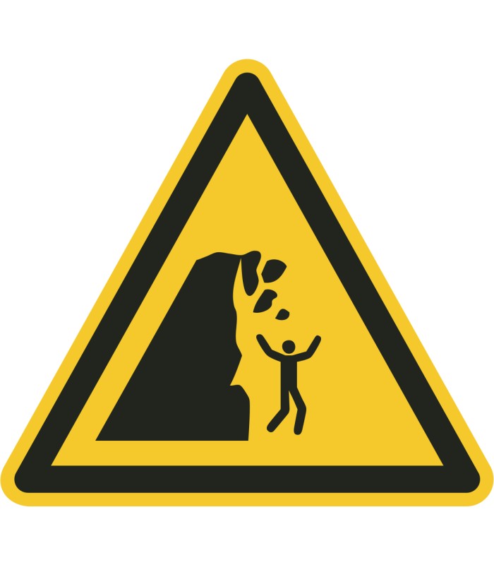 Die Schilder 'Warnung vor Steinschlag von instabiler Klippe' gem. ISO-20712 werden aus hochwertigem weißem Kunststoff hergestellt und sind in unterschiedlichen Größen erhältlich.