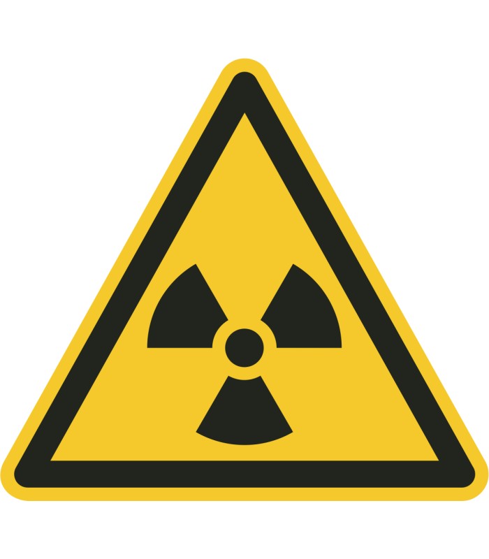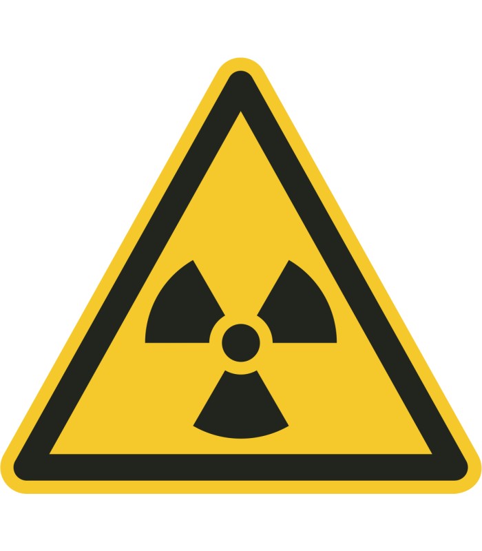 Die Aufkleber 'Warnung vor radioaktiven Stoffen oder ionisierender Strahlung' gem. ISO-7010 sind in verschiedenen Größen und auch spiegelverkehrt erhältlich.