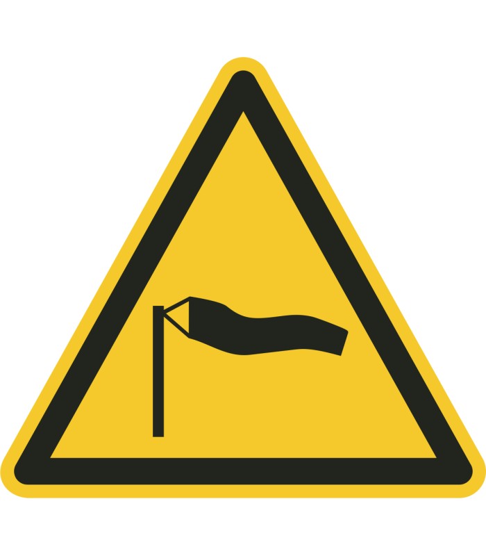 Die Aufkleber 'Warnung vor starkem Wind' gem. ISO-20712 sind in verschiedenen Größen und auch spiegelverkehrt erhältlich.